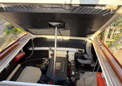Sous le capot, un moteur Volvo essence de 270 CV DUALPROP assure un excellent comportement maritime. Sa carène en V prononcée et son étrave droite et haute offrent une excellente tenue à la mer, particulièrement dans le clapot. À vitesse de croisière, la stabilité s’affirme et le confort devient remarquable.